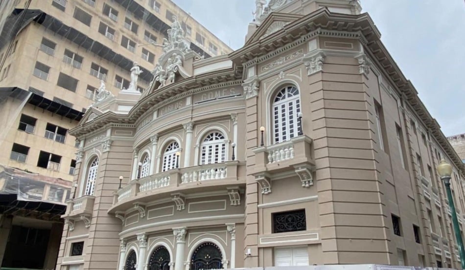 O espaço cultural está fechado há oito anos e passou por obras de revitalização no telhado, climatização e parte cênica, além do restauro do lustre principal e da pintura do teto. Agora, o Carlos Gomes comportará 450 pessoas e conta com sonorização e climatização modernas, acessibilidade plena e equipamentos de segurança para prevenção e combate a incêndios.
