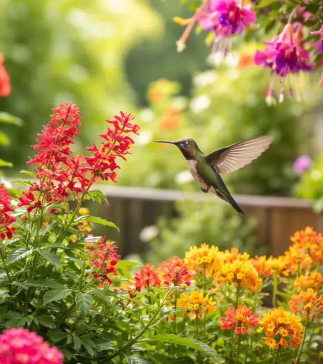 - Lantana (Lantana camara) – Planta resistente, com flores em forma de buquê em tons que vão do amarelo ao roxo. Além dos beija-flores, atrai borboletas.