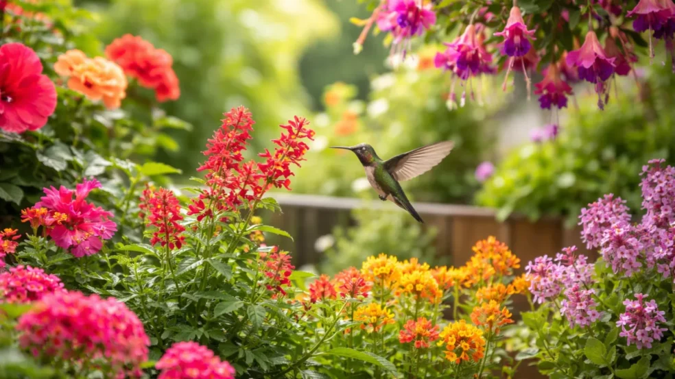 As plantas floríferas são aquelas que produzem flores vistosas, geralmente com cores vibrantes e bastante néctar, o que naturalmente atrai beija-flores. Esses pequenos visitantes alados preferem flores tubulares, com tons de vermelho, rosa, laranja ou roxo, pois são essas que costumam armazenar mais alimento para eles.