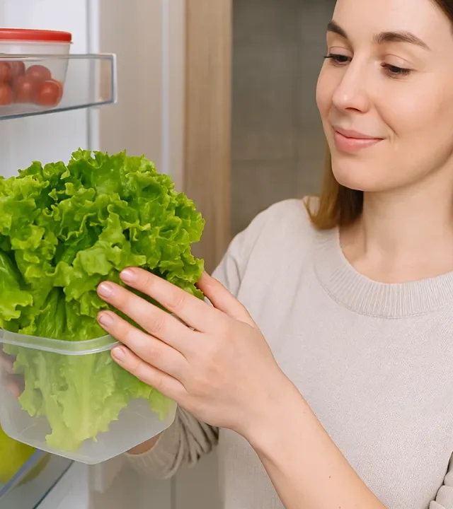 O local onde a alface fica guardada muda completamente o resultado. O ideal é colocá-la na parte inferior da geladeira, dentro da gaveta de vegetais, onde a temperatura é estável e a umidade natural é mais alta. Evite deixá-la próxima ao congelador, pois o ar frio demais queima as folhas.