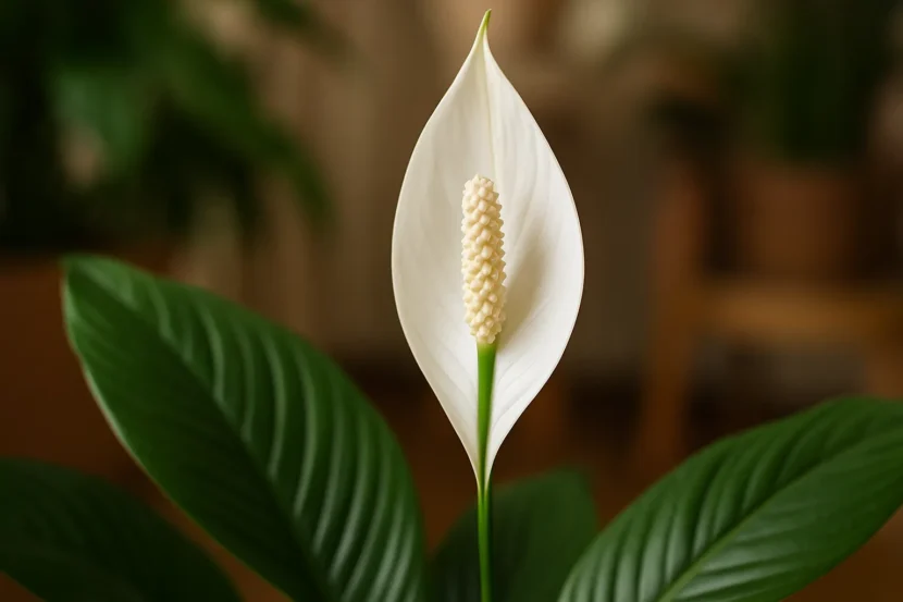 Outro efeito perceptível do uso contínuo do húmus de minhoca é na floração. O lírio-da-paz costuma ser tímido para florescer em ambientes internos, mas com o solo bem equilibrado e rico em matéria orgânica, ele entende que é seguro expandir sua energia para a reprodução.