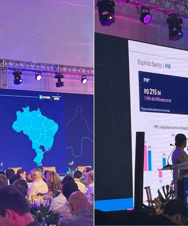 Segundo Paula Orrico, gerente de dados da Apex e responsável por apresentar o painel “Dados do ES”, em 2023, as regiões somadas tiveram um crescimento real do Produto Interno Bruto (PIB) de 5,7%, atrás apenas da Índia (9,2%) e à frente do Brasil (3,2%).
