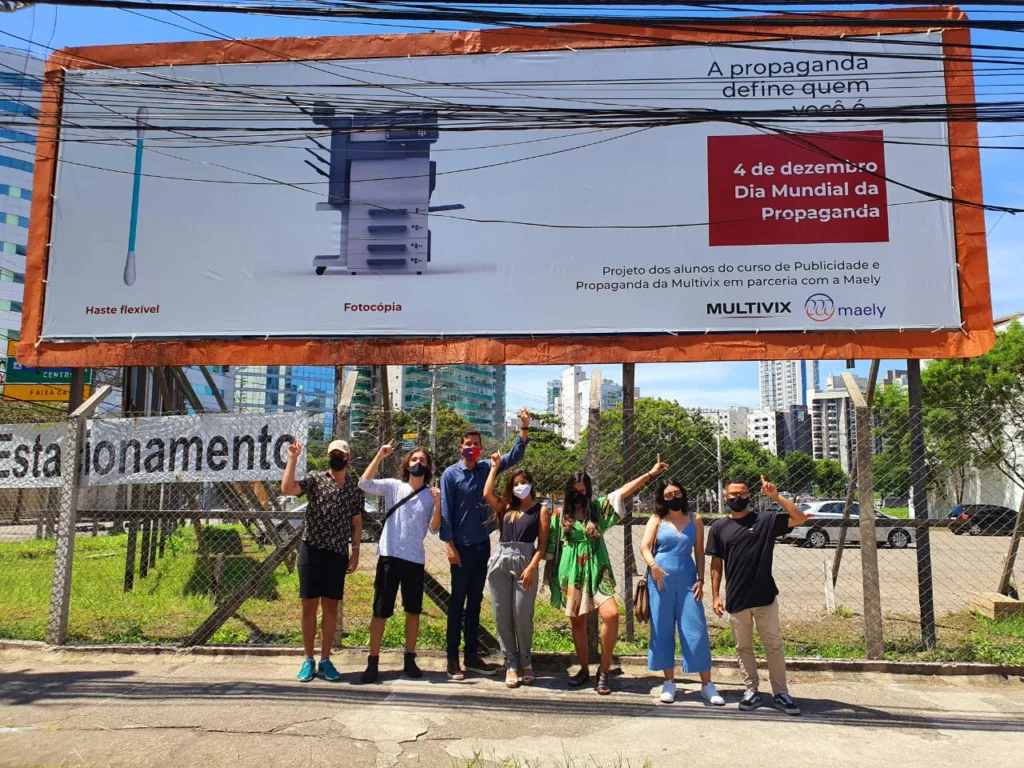 Na última sexta-feira, 04 de dezembro, foi comemorado o Dia Mundial da Propaganda, e claro que a data não passou em branco pelos alunos do curso de Publicidade e Propaganda da Multivix. Em parceria com a Maely, os alunos tiveram a oportunidade de desenvolver peças publicitárias para homenagear este dia tão especial. O projeto foi desenvolvido em sala de aula durante os meses de outubro e novembro e, além da nota, a ideia mais criativa seria contemplada com a sua veiculação nas ruas de Vitória.