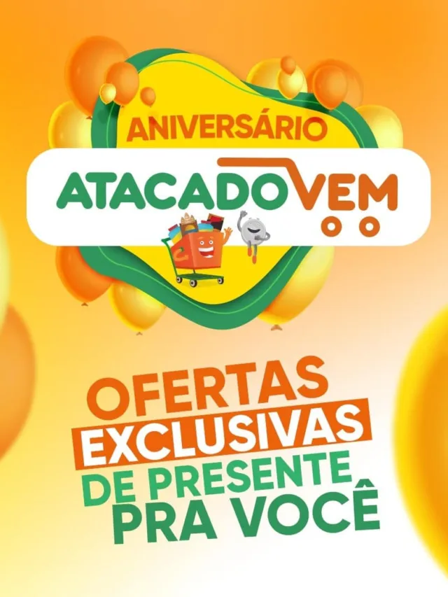 Varejo. Aniversário Atacado Vem: ofertas exclusivas de presente pra você!