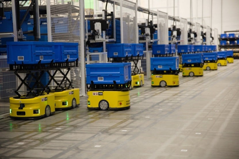 O centro de Viana adota um modelo híbrido que combina a atuação de cerca de 200 colaboradores com 90 robôs autônomos. As máquinas são responsáveis pela movimentação e manuseio das mercadorias de forma integrada.