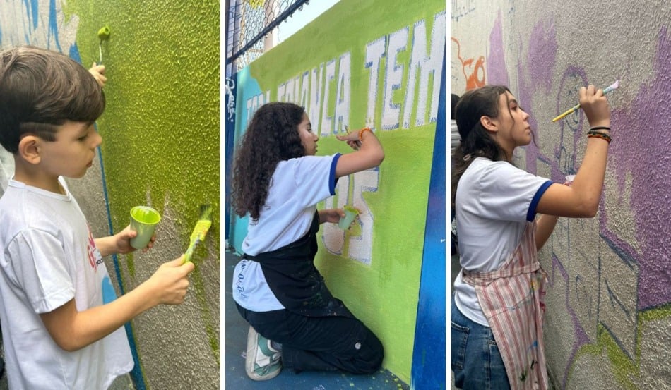 O mural artístico é o resultado de nove meses de oficinas de artes realizadas pelo Icores junto a 40 estudantes com altas habilidades e superdotação, na faixa etária de 8 a 16 anos.