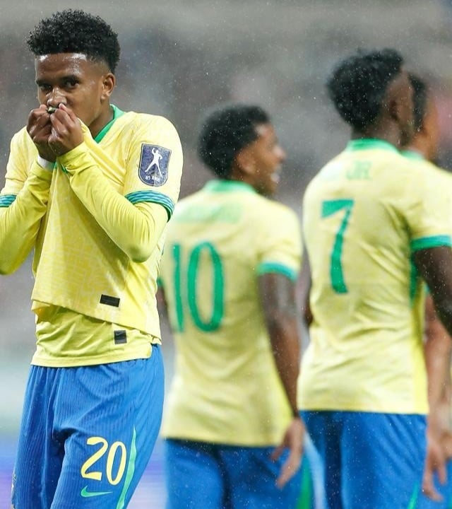 No segundo tempo, com menos de dois minutos, Estêvão roubou a bola no erro de Kim Min-Jae na saída da área e bateu cruzado para fazer um lindo gol, o terceiro do Brasil. Inspirado, Rodrygo também marcou seu segundo na partida logo na sequência, após bola recuperada por Casemiro e passe de Vini Jr.