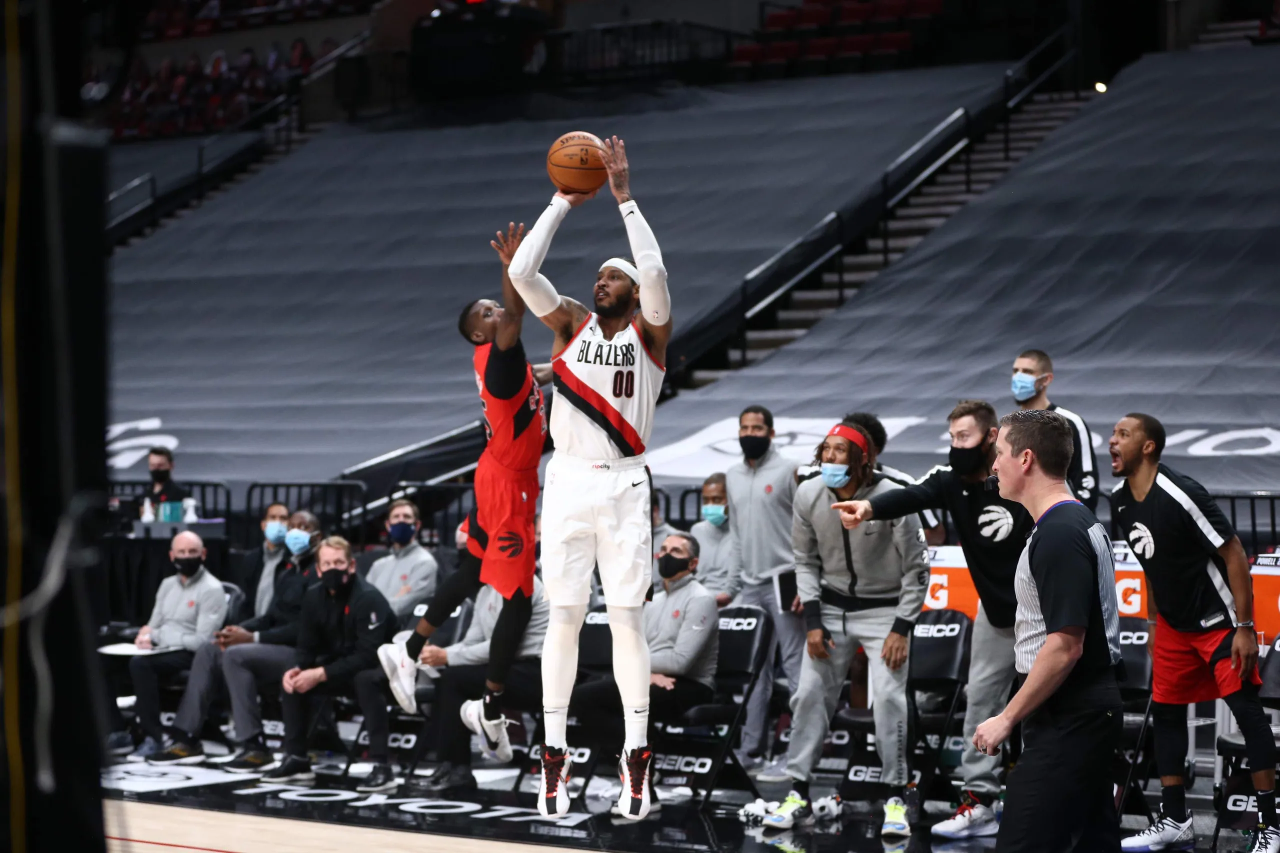 McCollum fez 30 pontos no total e teve a ajuda de Damian Lillard (23 pontos) e Carmelo Anthony (20). O time se recuperou na partida, após estar perdendo por 17 pontos e ainda ofuscou a grande atuação do camaronês Pascal Siakam, autor de 22 pontos, 13 rebotes e dez assistências.