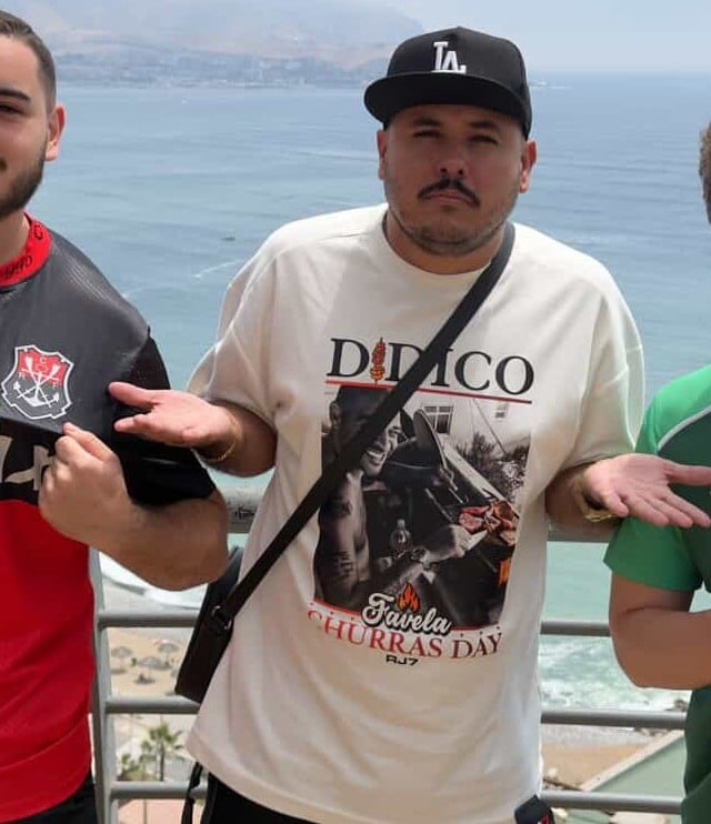 O capixaba criou o personagem de torcedor do Flamengo e faz vídeos nas redes sociais. Em Lima, exibe uma camisa com a foto do ex-atacante Adriano Imperador.
