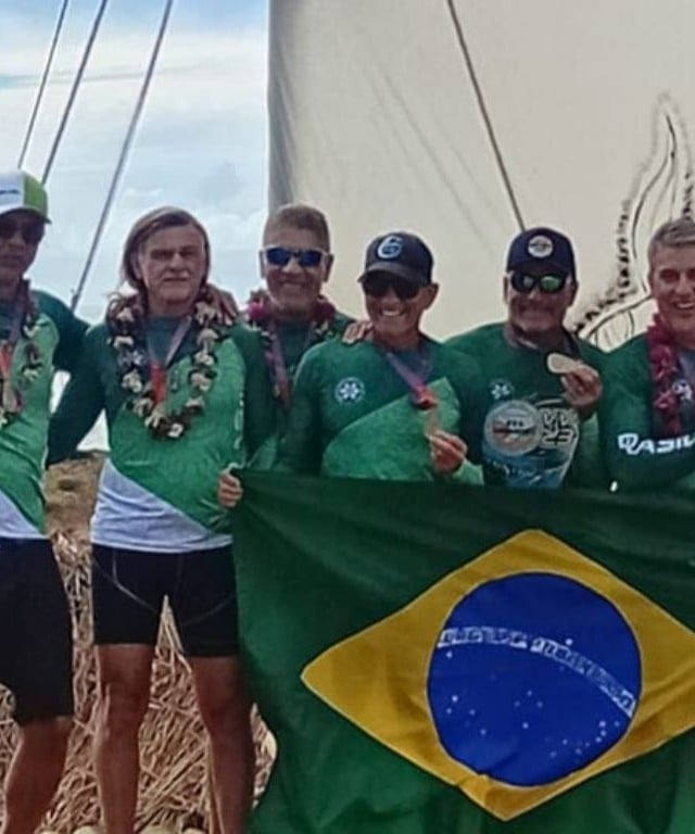 Foram duas medalhas de ouro na categoria master 60 masculino. Um feito inédito para o va’a do Espírito Santo.