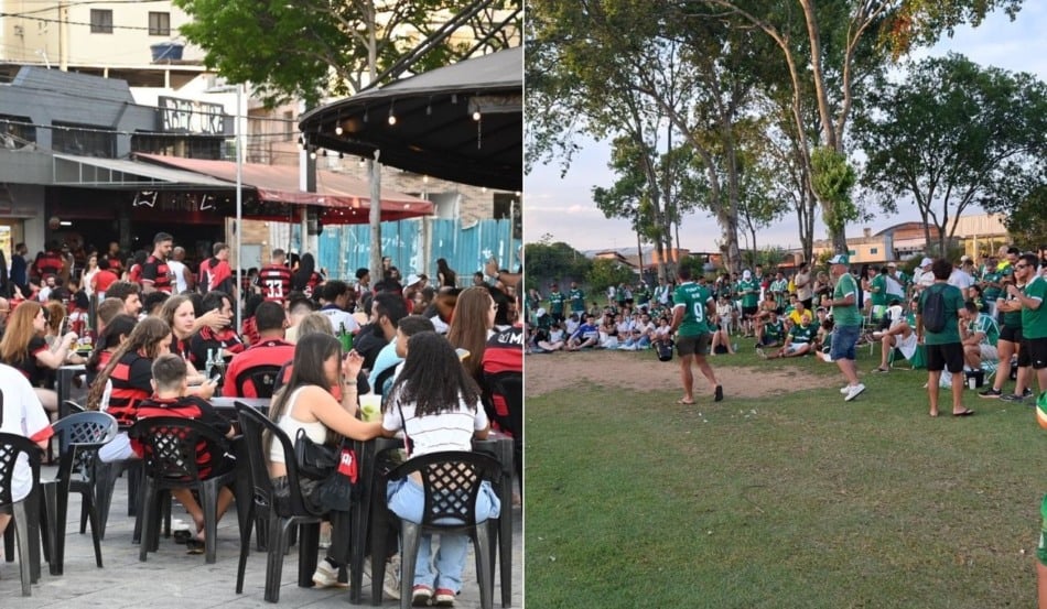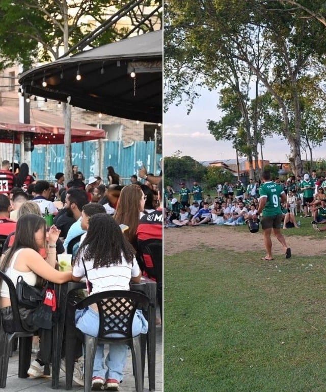 Enquanto os flamenguistas se reuniram em bares nos redutos como a Rua da Lama, em Jardim da Penha, em Vitória, torcedores do palmeiras se concentraram em peso um evento na Serra.