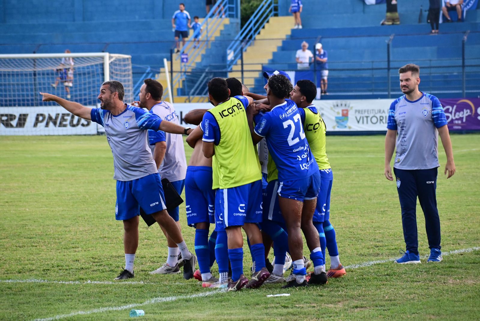 No último lance do jogo, o Vitória marcou o que seria o gol da virada com Vinicius. Porém, após análise do VAR, o lance foi anulado por toque de mão do atacante alvianil.