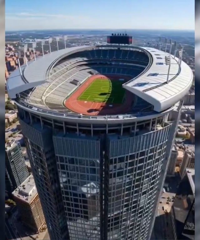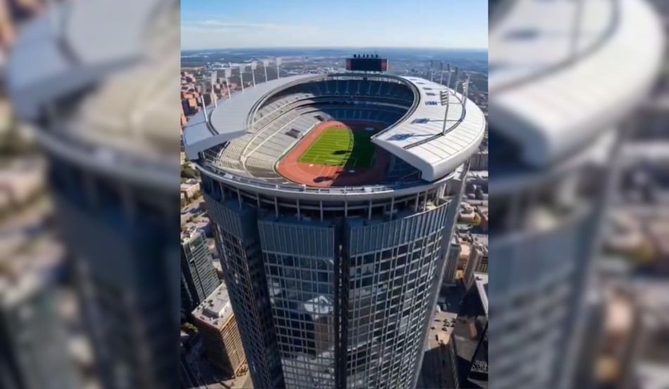 Apesar de inédito, a possibilidade de haver estádio sobre arranha-céu não é factível devido à questões estruturais e de segurança. O vídeo que viralizou nada mais é do que uma obra de inteligência artificial (IA).