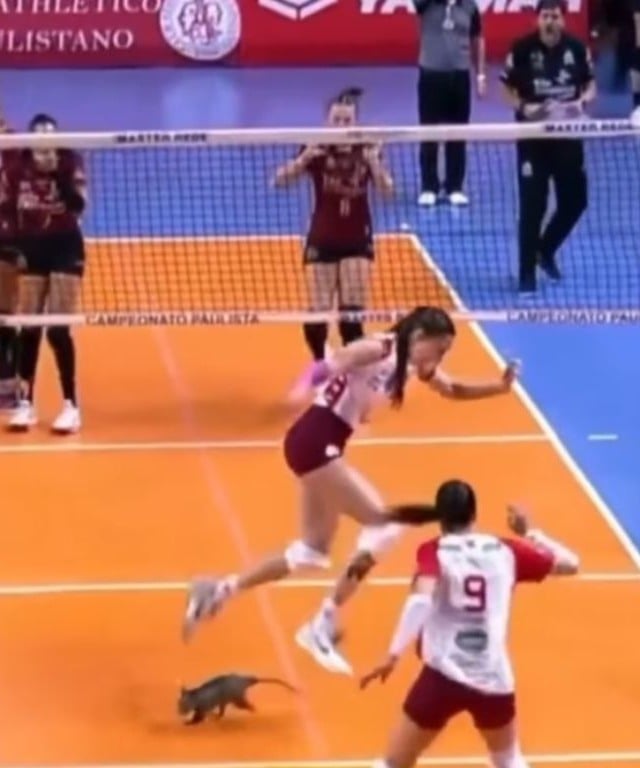 No “golden set”, o placar estava em 15 a 12 com as equipes posicionadas, até que um gambá partiu em velocidade e invadiu a quadra, assustando algumas atletas com a central Luzia, do Barueri, que saltou sobre o animal.