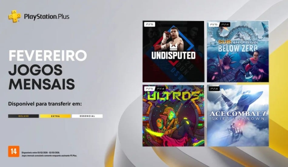 Vale lembrar que esta é a última oportunidade para resgatar os jogos de janeiro (Need For Speed Unbound, Disney Epic Mickey: Rebrushed e Core Keeper), que ficam disponíveis até o dia 2 de fevereiro.