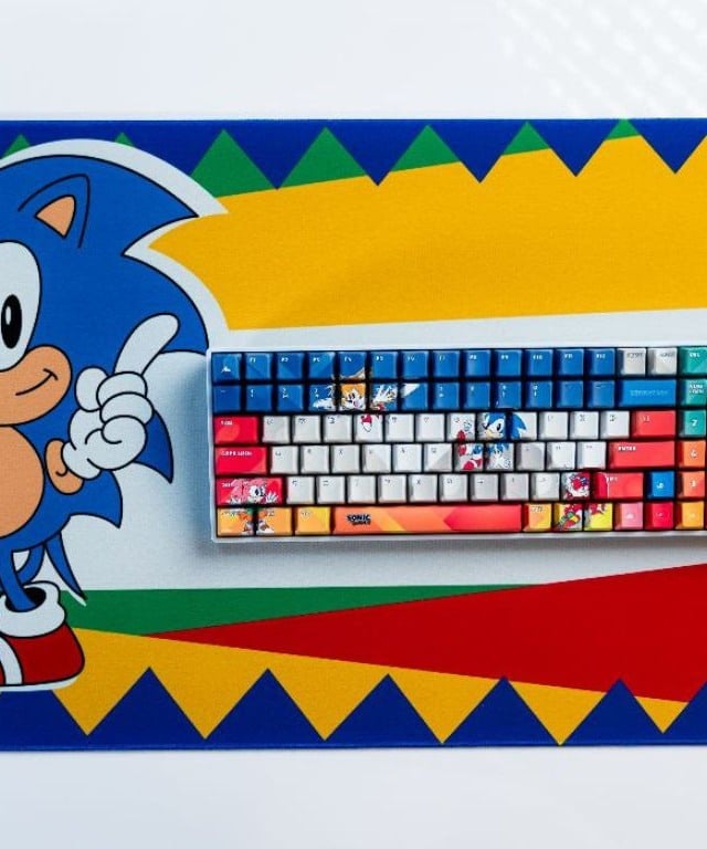 A coleção é complementada por um conjunto de teclas Basecamp 75+ com o design do Sonic CD (vendido separadamente) e quatro mousepads XL Control que harmonizam todo o conjunto.