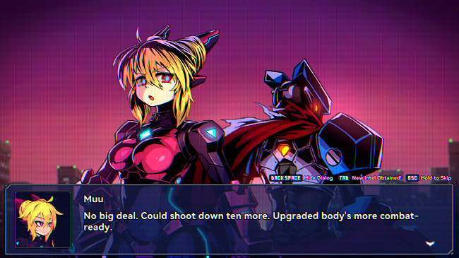 Muu é uma robô lutadora de combate corpo a corpo que usa garras de energia, capaz de movimentos ágeis para lançar inimigos ao ar e persegui-los com ataques combinados contínuos, causando dano massivo. Já Kelly, um humano aprimorado especializado em armas de fogo e combate tático de artes marciais, é um personagem altamente habilidoso, capaz de dominar completamente o campo de batalha.