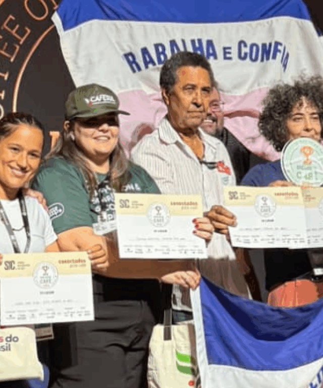 Mais uma conquista histórica da evolução da qualidade dos cafés do Espírito Santo. O Espírito Santo é o único estado do Brasil que produz em quantidade e com qualidade as duas espécies comercializadas no Brasil e no mundo: o conilon, nas regiões mais quentes, e o arábica, nas montanhas. Tivemos cinco dos dez melhores arábicas do país e três entre os cinco melhores conilons, inclusive o campeão. Esse é um trabalho de parceria com o governo do estado, o Sebrae, as cooperativas e todo o sistema de apoio à agricultura. Isso nos motiva a continuar levando renda e desenvolvimento para as famílias de cafeicultores capixabas.