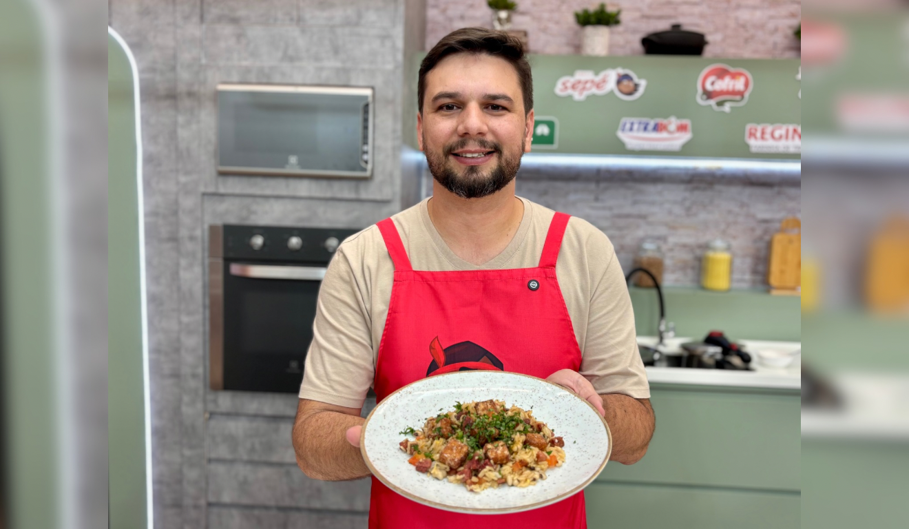 Matheus apresentou uma galinhada equilibrada, com temperos na medida e uma finalização cuidadosa. Sua apresentação chamou atenção pelo equilíbrio dos elementos no prato.