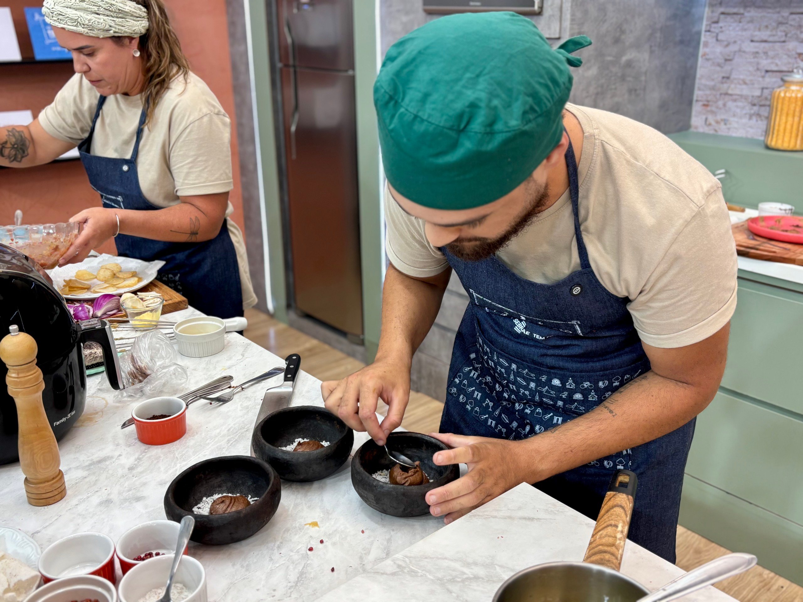 Os participantes tiveram 40 minutos para criar receitas autorais que incluíssem obrigatoriamente inhame, socol, pimenta-rosa, pimenta-do-reino, café e beiju, explorando sabores e técnicas que valorizassem a gastronomia local.