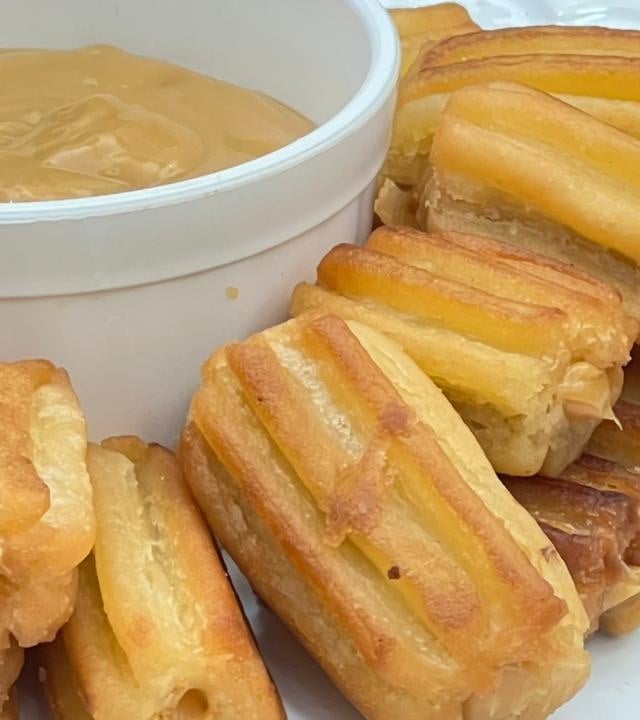 - Passe os churros no açúcar com canela e sirva com o doce de leite.