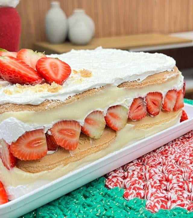 Se você está em busca de uma sobremesa prática, refrescante e com apresentação impecável, a Torta Gelada de Morango é a escolha perfeita. Com camadas cremosas de brigadeiro 4 leites, chantilly aromatizado com leite de coco e morangos frescos, a receita da confeiteira Naiara Costa entrega sabor e leveza na medida certa — ideal para dias quentes ou para encerrar uma refeição especial.