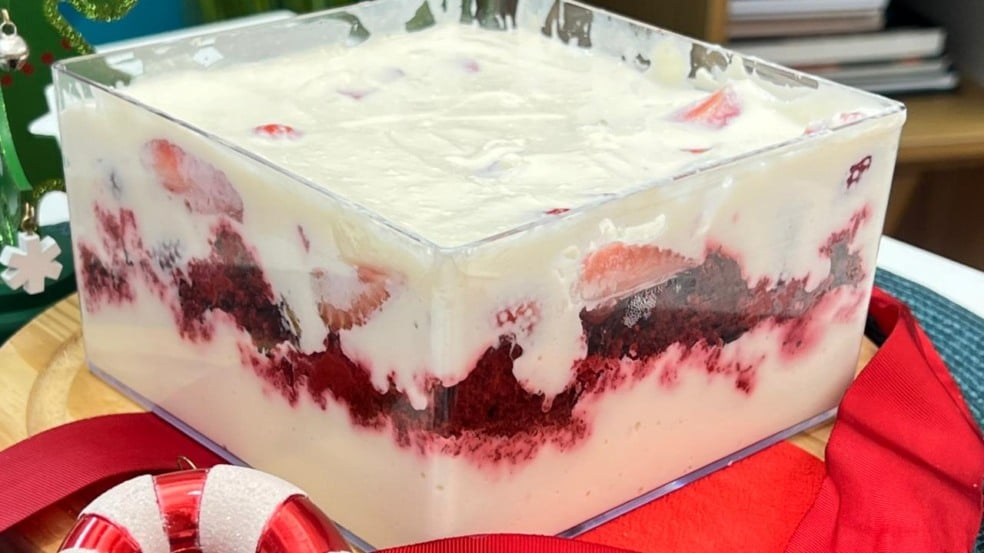 A clássica Red Velvet Cake ganhou uma versão inclusiva, mais leve e igualmente saborosa — e o melhor: sem açúcar, sem glúten e sem lactose. A receita da cozinheira Rosamaria Borges combina textura macia, cor vibrante e um recheio cremoso de cream cheese com morangos, tornando-se uma excelente opção para quem busca sobremesas mais saudáveis sem deixar o prazer de lado.