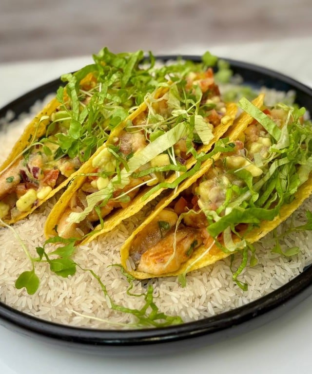 - Montagem: recheie os tacos com a tilápia grelhada, guacamole, pico de galo e finalize com alface fatiada.