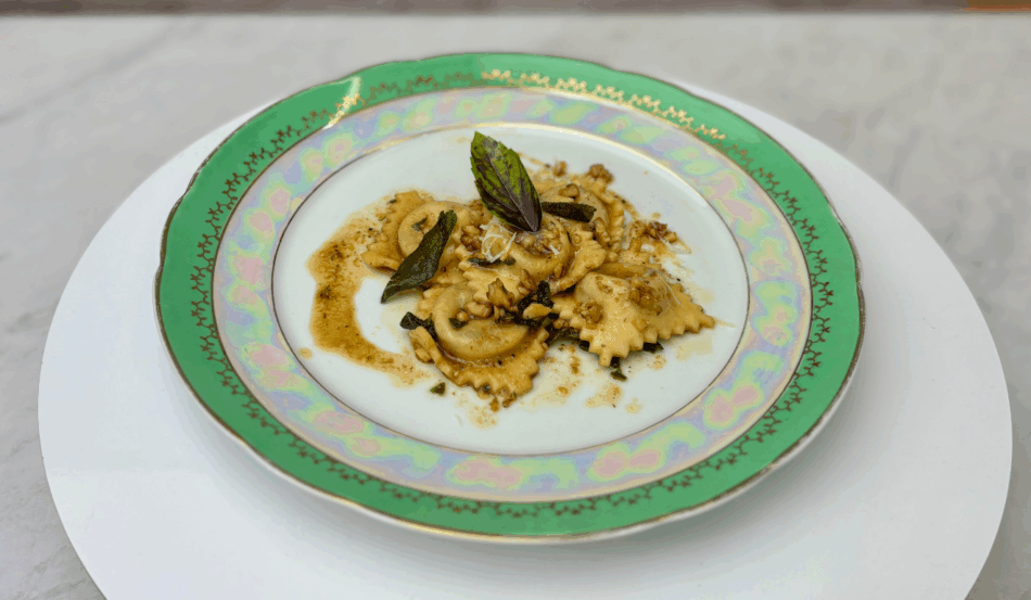 Prato principal: Ravioli na manteiga de sálvia e nozes