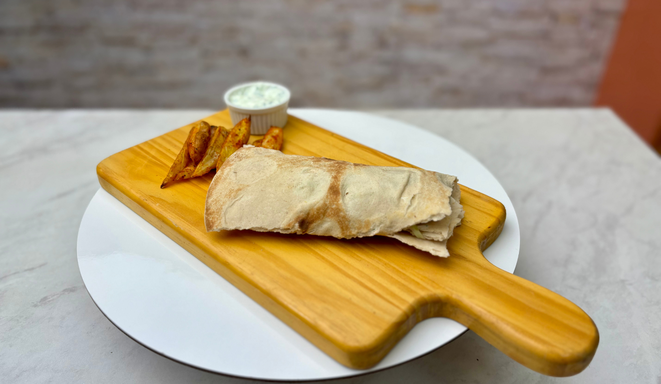 - Montagem: recheie o pão com kafta, sirva com tzatziki e pan tomaca.