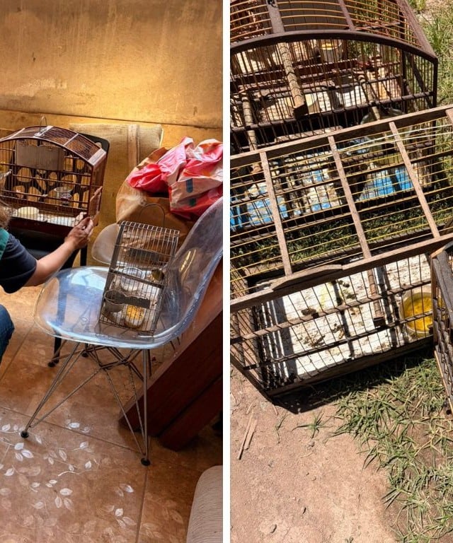 No local, as equipes encontraram as aves em gaiolas sem condições adequadas, além disso, os animais não tinham comida adequada e os bebedouros não eram trocados há vários dias e acumulavam lodo e sujeira.