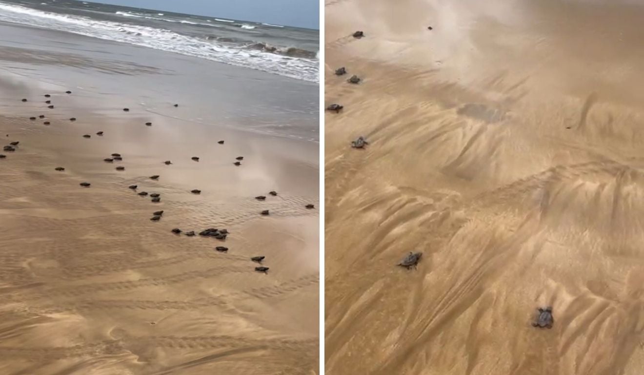 Outro registro do momento emocionante também foi compartilhado nas redes sociais por Julia Borges, na terça-feira (20). No vídeo, ela conta que foi correr na praia com a tia e se deparou com o nascimento dos pequenos animais marinhos.