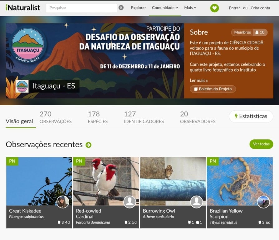 Entre os dias 11 de dezembro e 11 de janeiro, o município de Itaguaçu, na região serrana do Espírito Santo, recebeu o Projeto Clube de Observadores da Natureza, do Instituto Últimos Refúgios.