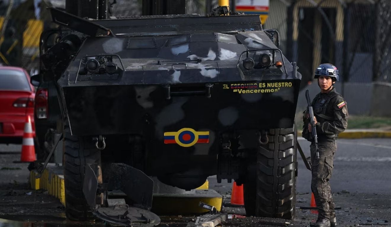 O complexo militar Fuerte Tiuna, em Caracas, foi um dos mais afetados pelo ataque americano. Na imagem acima, membro da Guarda Nacional faz segurança do local após bombardeio.