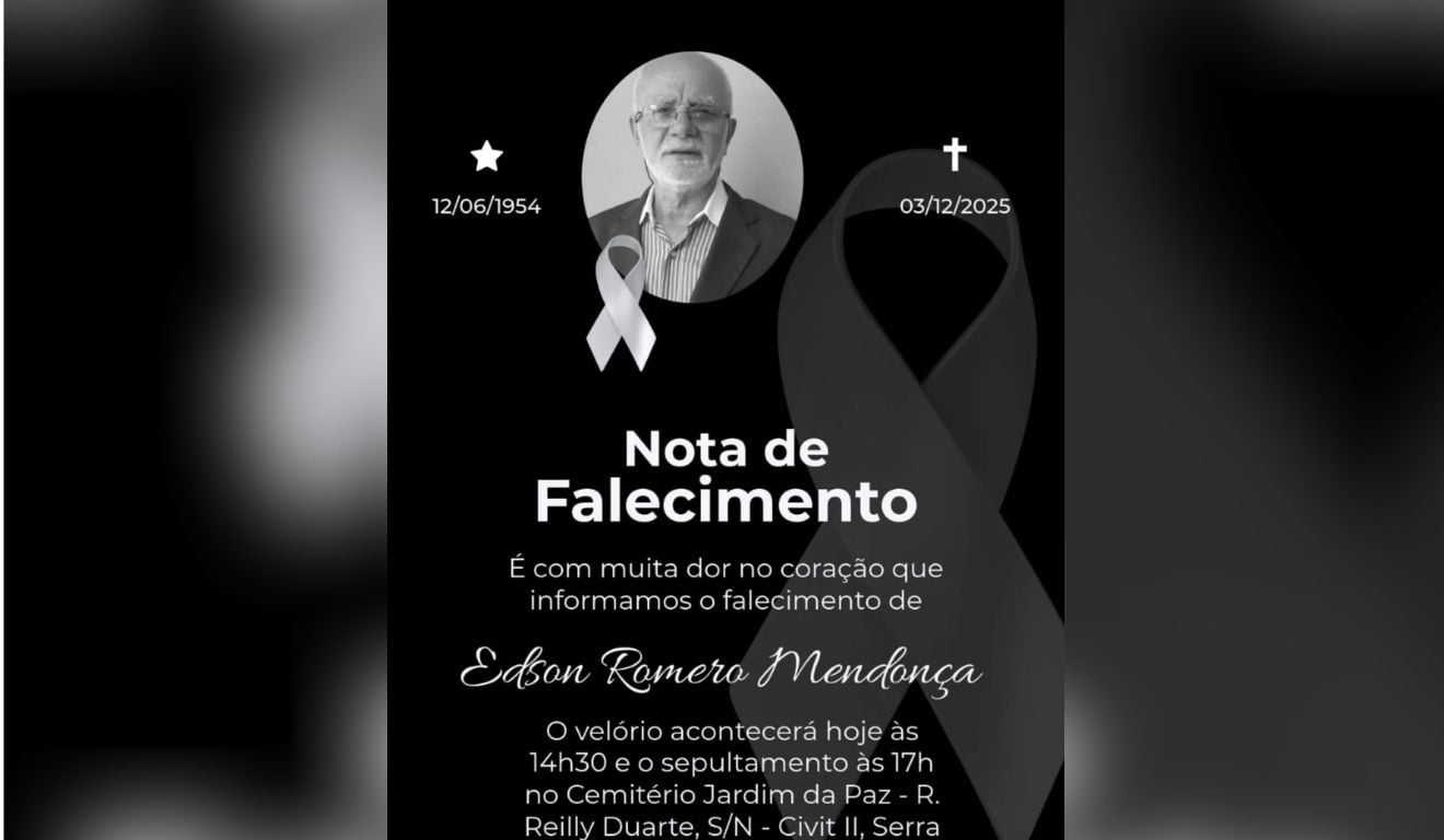 O velório de Romero Mendonça será realizado a partir das 14h30 desta quarta-feira (03), no Cemitério Jardim da Paz, localizado na Serra. O sepultamento está marcado para ocorrer no mesmo local, às 17h.