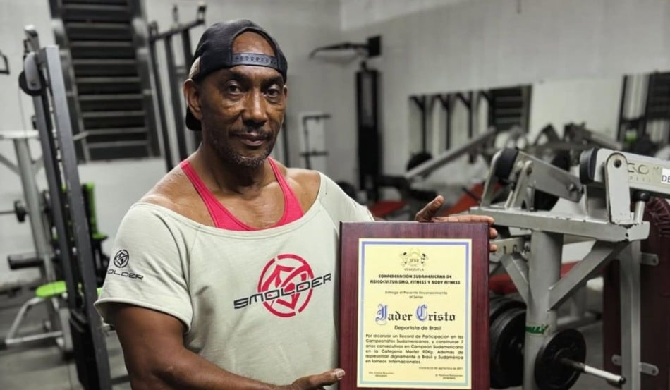 A federação informou que Jader não competia mais, mas não perdia eventos de fisiculturismo.
