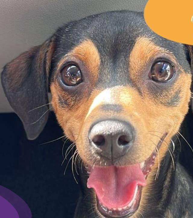 Características: Cachorrinha dócil, brincalhona, porte médio, magra, mistura de pinscher com vira-lata