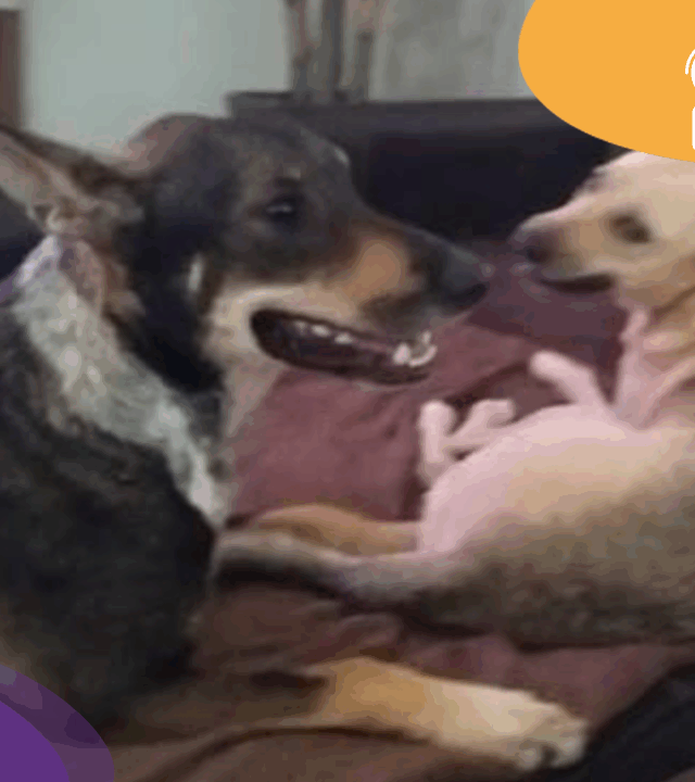 Características: Cães de porte médio; Grandão é preto e Pipoca é de cor clara.