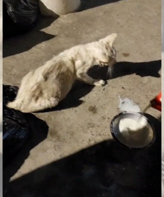 De acordo com a protetora de animais do bairro Feu Rosa, Dulcinéia Rossw, o animal foi encontrado por uma mulher, que acreditou que se tratava de uma gata prenha envenenada. Ao levarem o gato até o veterinário, descobriram que se tratava de uma barriga d’água.