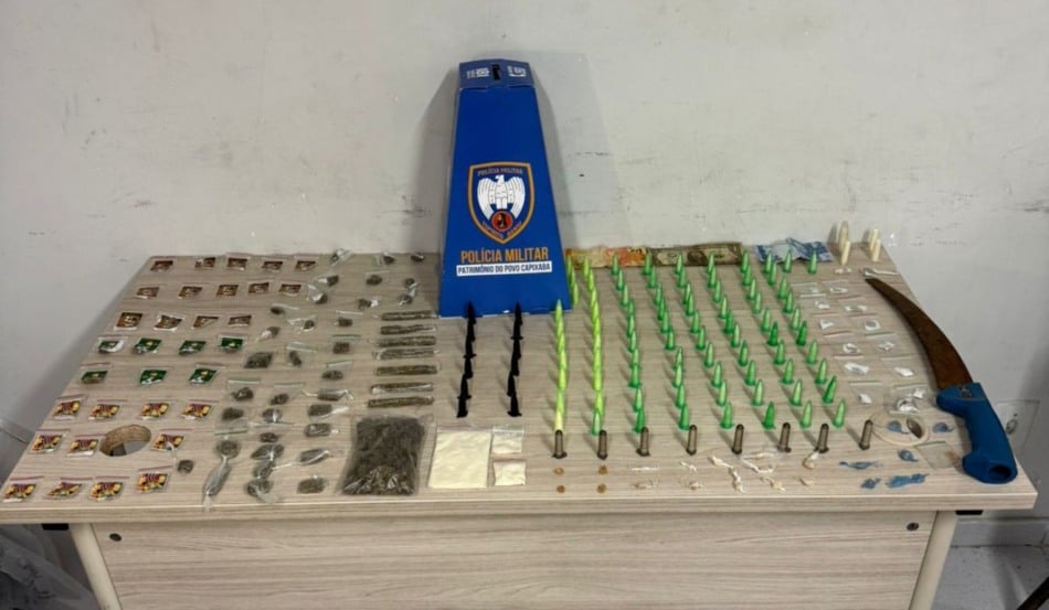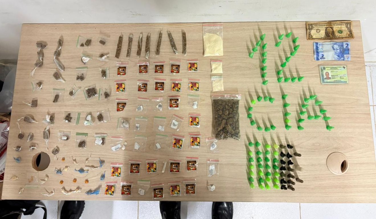 A caminho da viatura, os alunos-soldados ainda flagraram um terceiro suspeito também com drogas. O homem, de 51 anos, estava com 93 pinos de cocaína, duas unidades de haxixe, 12 buchas de maconha e 11 pedras de crack.