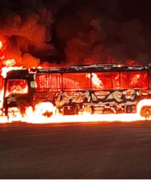 Ônibus incendiado no Sambão do Povo