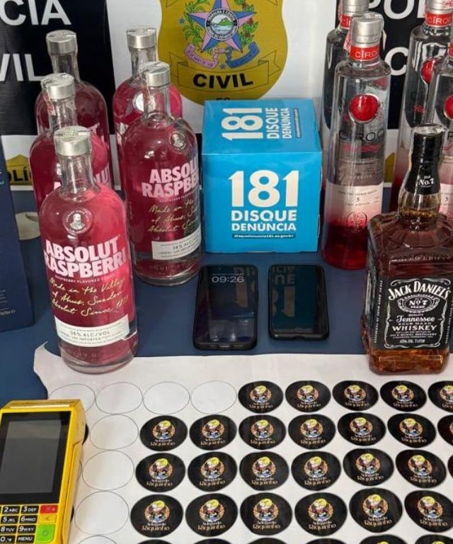 Além das bebidas, na casa do suspeito foram apreendidos celulares, equipamentos de informática, adesivos da distribuidora clandestina, dinheiro e uma máquina de cartão.