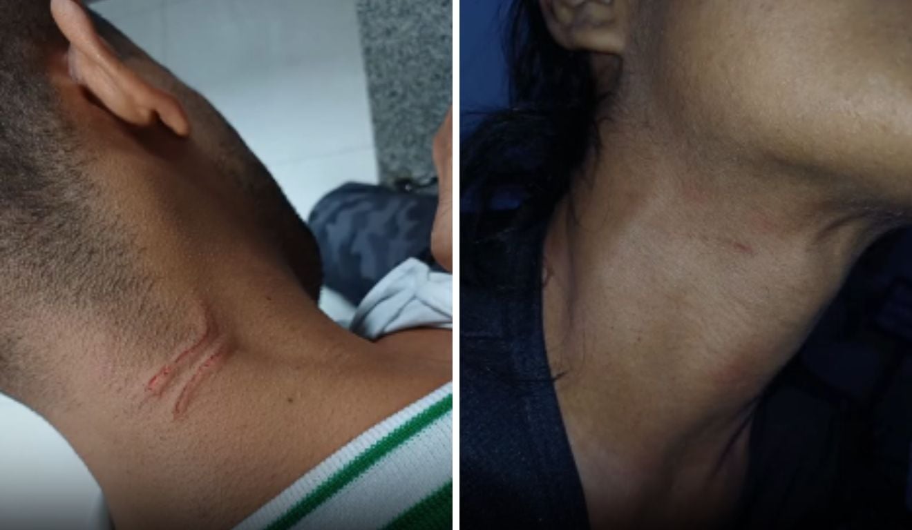 Fotos anexadas à ocorrência mostram marcas de agressões nos dois envolvidos. A mulher apresentava vermelhidão no pescoço e em um dos braços. O homem tinha arranhões no pescoço, além de marcas de agressão no braço e na mão, apontadas pela polícia como mordidas.