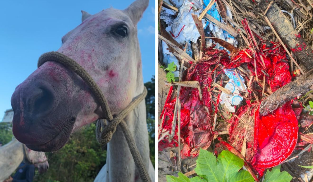 “Chegou a denúncia de que havia animais pintados em um terreno baldio em Cariacica. Nós nos dirigimos ao local e constatamos que de fato havia dois animais, um cavalo e uma égua, todos sujos de tinta vermelha. Chegamos a encontrar a tampa da lata de tinta, que era uma tinta similar a utilizada para pintar paredes, então uma tinta tóxica, que pode ter alto teor de ferro”, relatou.