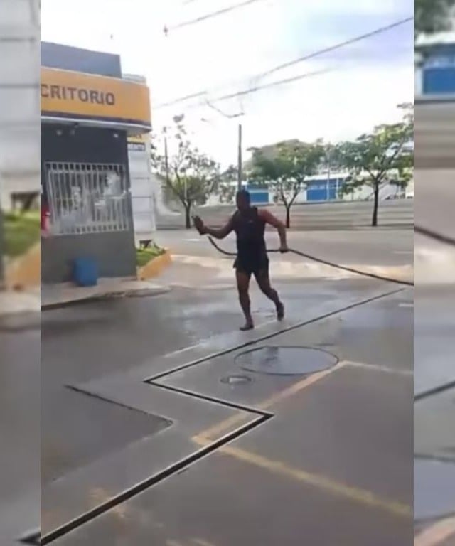 O homem tirou a mangueira da bomba e começou a “tomar banho” de gasolina. Além disso, espantou os clientes, que saíram desesperados com medo de acontecer um incêndio.