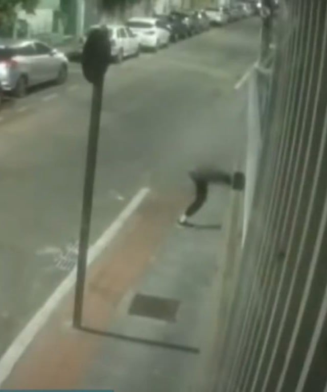 “Ele socou o interfone, entortou a câmera, socou o portão de vidro e chegou a estragar o portão do prédio. Uma pessoa abriu o portão para sair e ele invadiu. Como eu não estava em casa, ele foi direto para o andar da ex-companheira, bateu na porta e um morador que tem um cachorro bravo expulsou ele. Ele saiu do prédio, socou o elevador e quebrou vidros do teto do elevador”, contou.