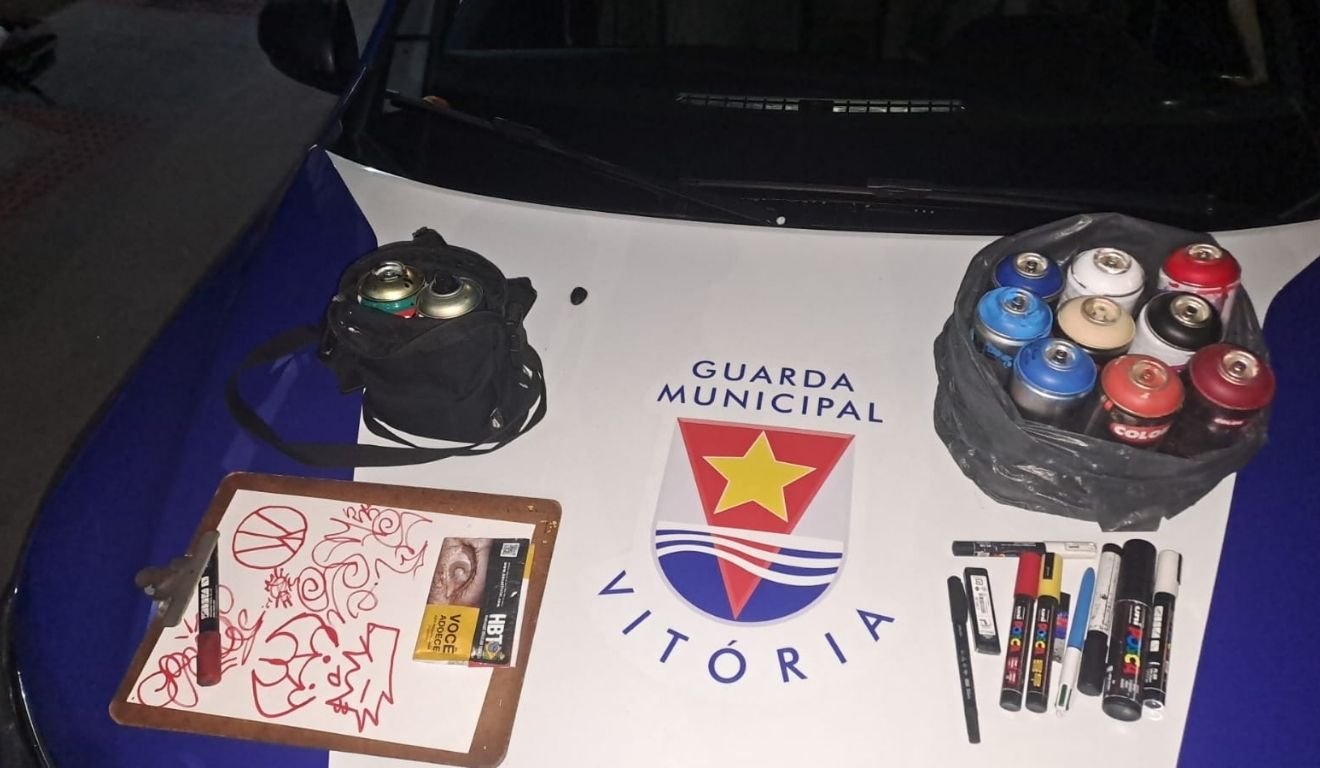Com os jovens, foram apreendidas latas de tinta spray, canetas e uma bisnaga de pigmento, materiais que estavam sendo utilizados nas pichações. Na mesma região, a equipe identificou outros sinais de vandalismo, inclusive em uma estátua que homenageia Pedro Nolasco.