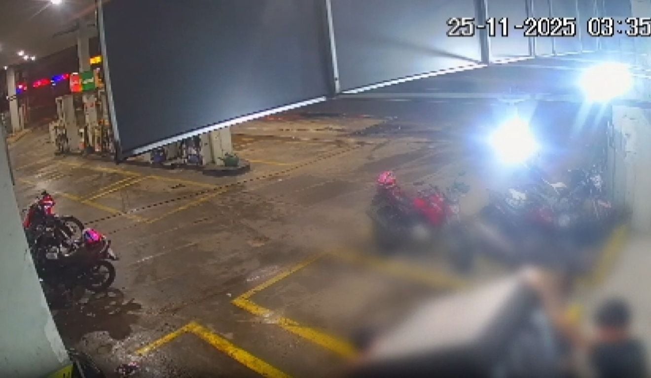 Os quatro suspeitos foram vistos vandalizando uma máquina de pelúcias, que fica em uma farmácia na área do posto de combustível, onde tem várias câmeras. A máquina também tem câmera, mas nada impediu a ação criminosa.