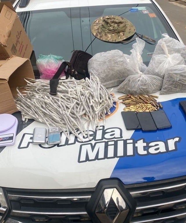 Ainda do lado de fora, os militares sentiram cheiro de maconha e, ao entrar no imóvel, encontraram todo o material apreendido.