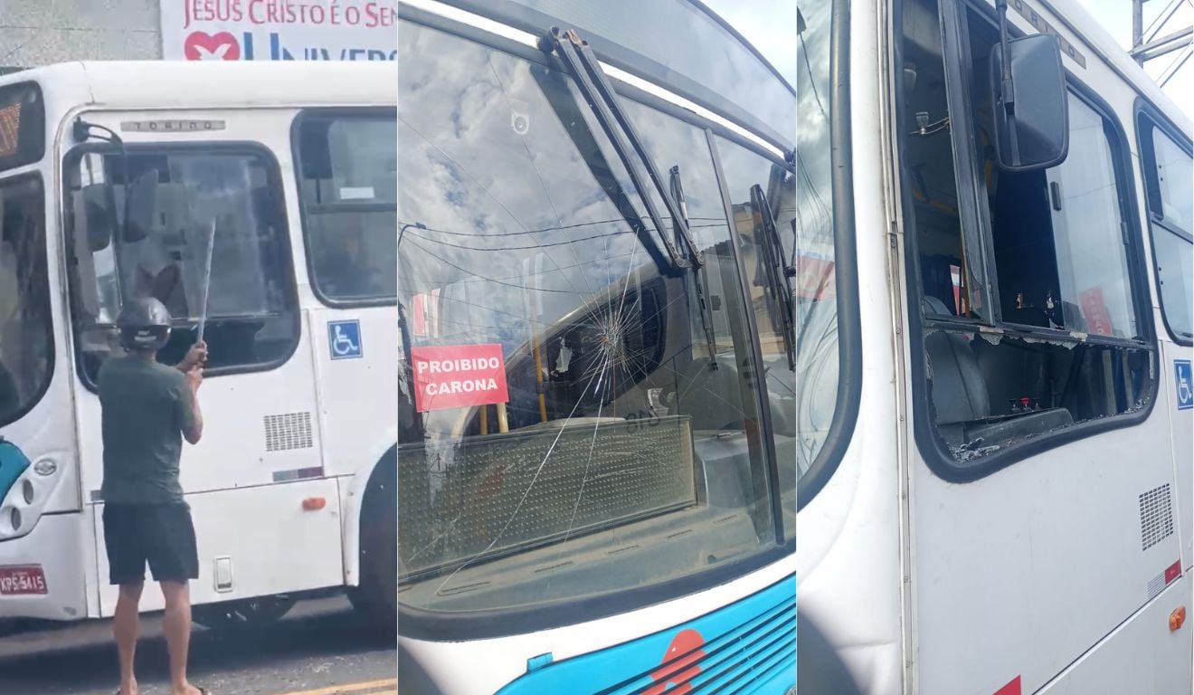 De acordo com o condutor do coletivo, quando ele parou o veículo para o desembarque dos passageiros, o homem desceu da moto e começou a golpear o ônibus com um pedaço de madeira. Imagens mostram o momento da depredação e da agressão ao motorista.